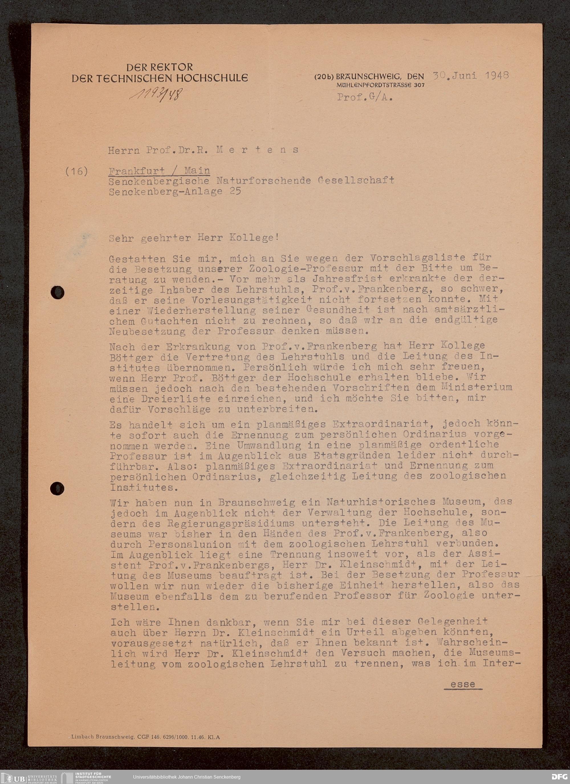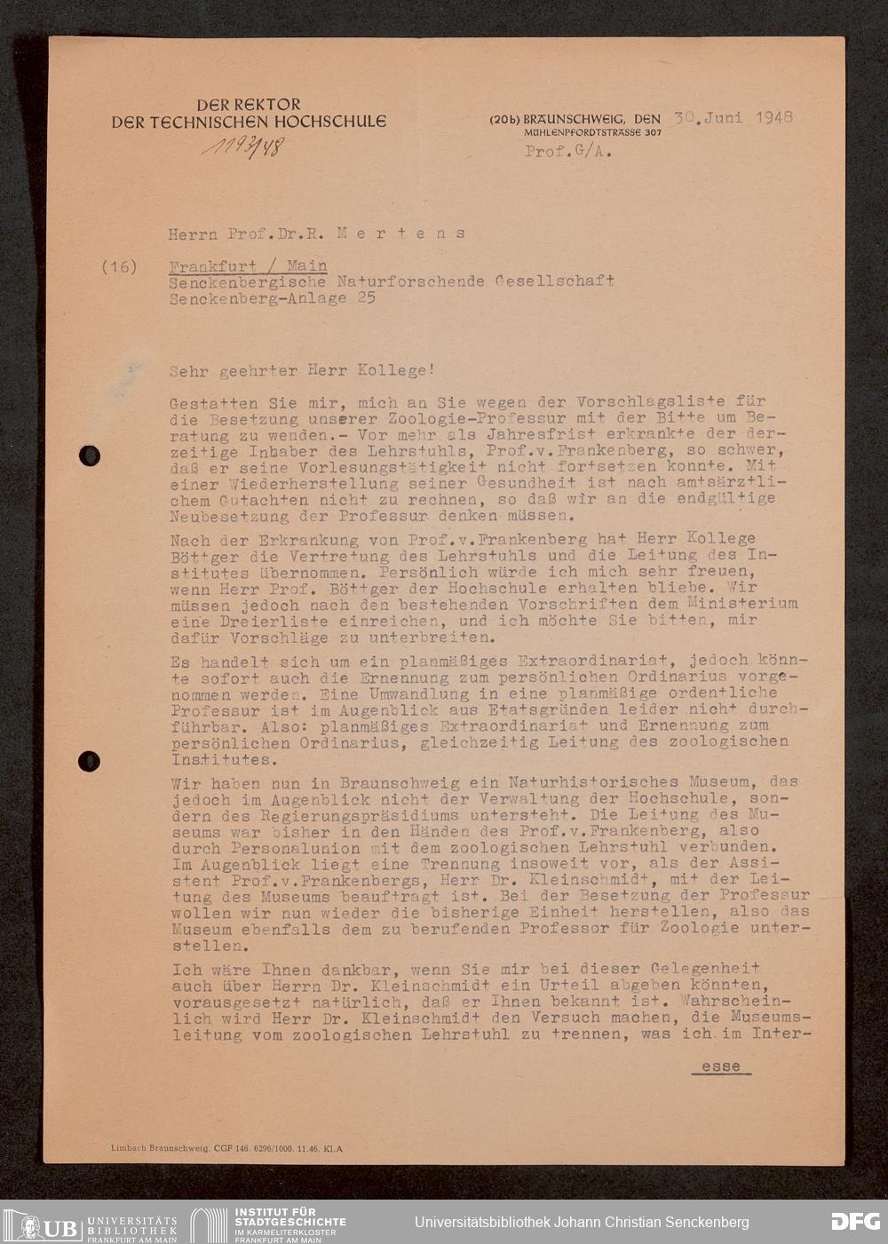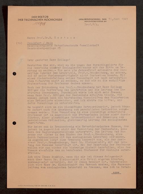 V176 Senckenberg Gesellschaft für Naturforschung, 1759-1 - Korrespondenz von Robert Mertens