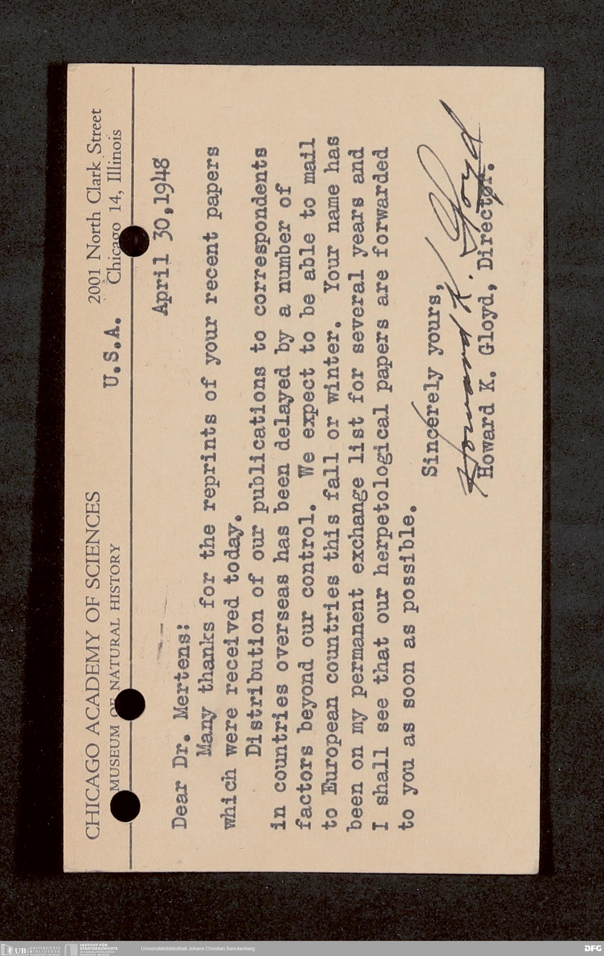 V176 Senckenberg Gesellschaft für Naturforschung, 1759-1 - Korrespondenz von Robert Mertens