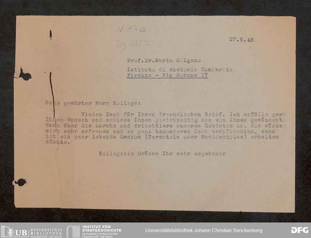 V176 Senckenberg Gesellschaft für Naturforschung, 1759-1 - Korrespondenz von Robert Mertens